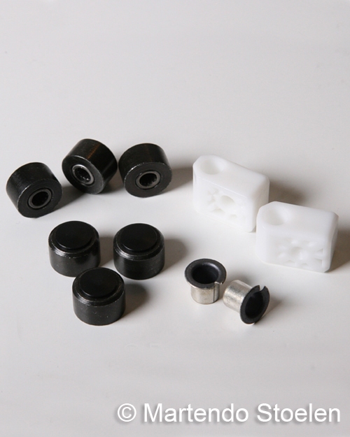 4 x stalen rol met naaldlager voor het schaarstuk (achterzijde boven en onder).